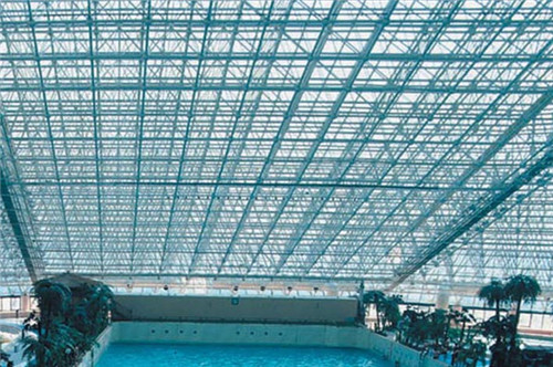 由多根桿件按照一定的網(wǎng)格形式通過節(jié)點(diǎn)連結(jié)而成的空間結(jié)構(gòu)。具有空間受力、重量輕、剛度大、抗震性能好等優(yōu)點(diǎn);可用作體育館、 影劇院、展覽廳、候車廳、體育場看臺(tái)雨篷、飛機(jī)庫、雙向大柱 網(wǎng)架結(jié)構(gòu)距車間等建筑的屋蓋。缺點(diǎn)是匯交于節(jié)點(diǎn)上的桿件數(shù)量較多,制作安裝較平面結(jié)構(gòu)復(fù)雜。